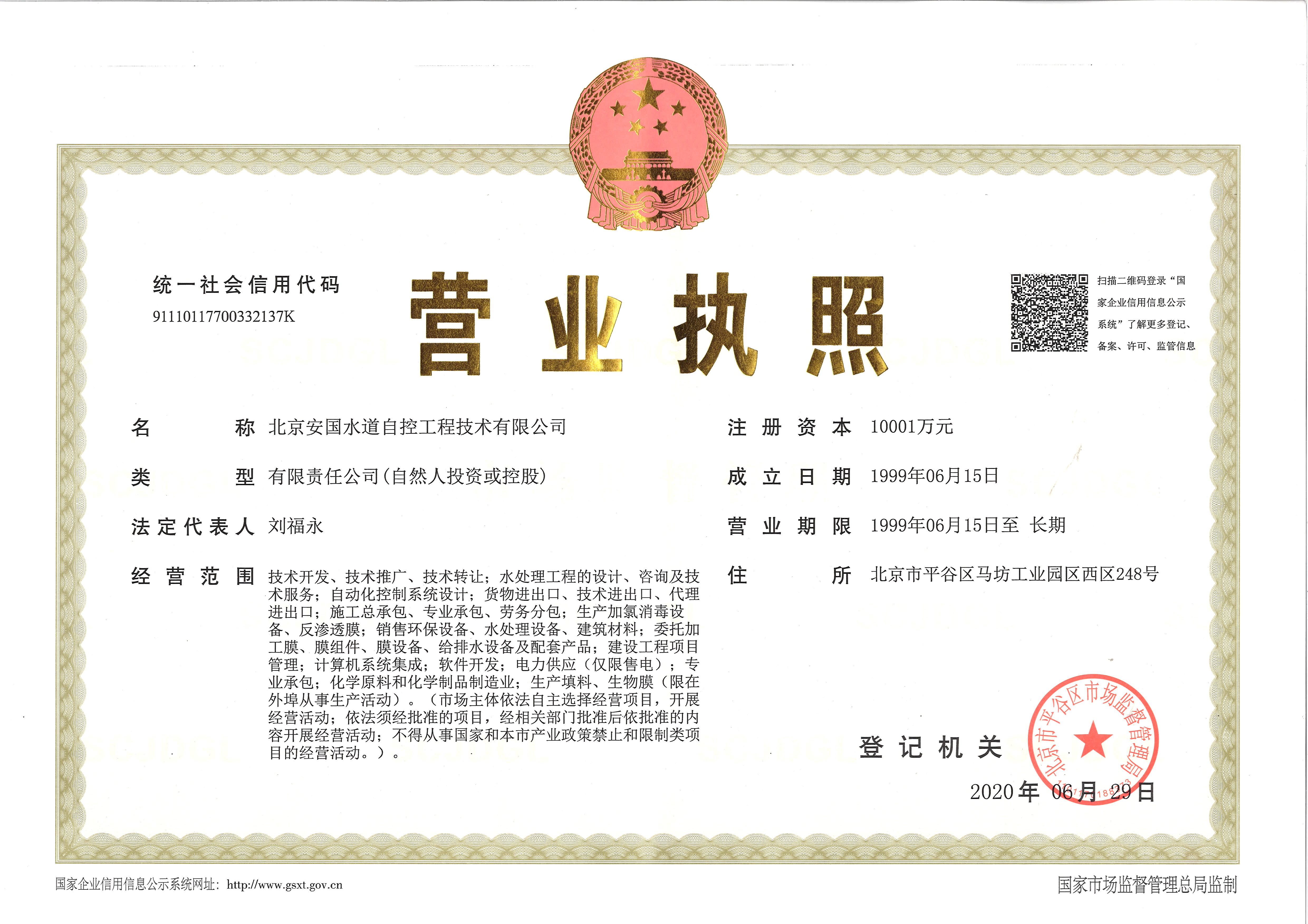 北京安國(guó)水道自控工程技術(shù)有限公司2015年入駐中國(guó)給水排水品牌委員會(huì)